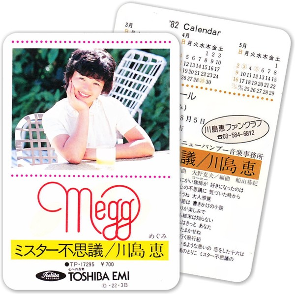 そして、サンデーズ加入から約1年の歳月を経た1982年2月21日、「ミスター不思議」という曲で歌手デビューを果たしたのだった。当時の東芝EMI事情として、『3年B組金八先生』の生徒役として人気を得たつちやかおりの同月デビューを予定していたものの、これを覆してメグのデビューが優先されたことも記しておくーー。