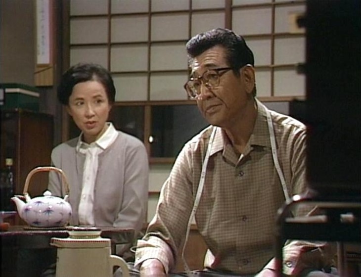 とはいえ、小市民を演じていても、そこは鶴田浩二。真剣な顔でミシンの前に座る姿は風格も色気もある。独りぼっちになりたくないゆえに “アパートで暮らしたい” と言う住み込みの弟子(平田満)をなんとかひきとめようとする様子も、息子の彼女(美保純)に翻弄される姿も、妻に横恋慕する中年男(井川比佐志)に嫉妬する顔も、おかしみがありながらなんともチャーミング。