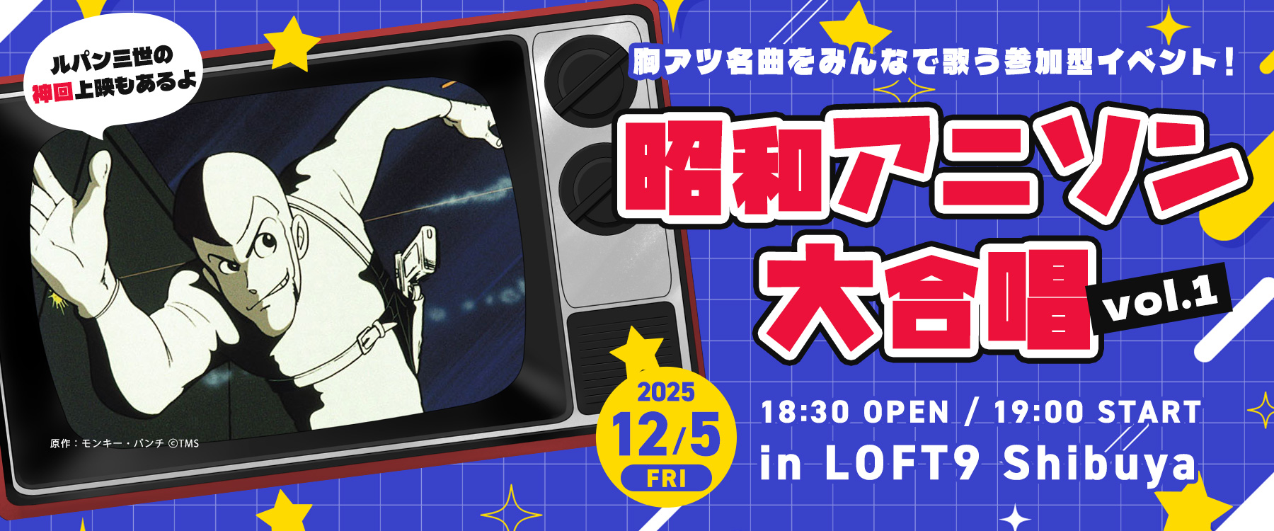 目玉企画として、人気アニメの “神回オフィシャル上映” を実施します。今回は「ルパン三世」第1シリーズ第5話「十三代五ヱ門登場」を会場全体で共有体験。自宅では味わえない贅沢な時間をお届けします(約70分想定)